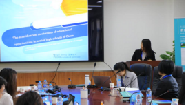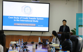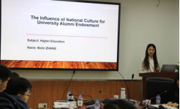 北京师范大学——广岛大学研究生论坛学术报告部分含博士生论坛与硕士生论坛两个模块。在上午的博士生论坛中,来自中日两国的8位博士对不同的话题展开了论述。在跨文化理解的视域下,周川、张博林、付宇倩分别对高等教育领域中的学分认证体系、大学校友捐赠以及中国高校女教师投入科研的问题发表见解;张庆怡、叶晓梅分别对初高阶段中的教育机会均等问题、师生关系对学生学业成绩影响问题;齐方萍从区域治理的角度谈我国学区如何共建共享课程资源;钱晓菲论述了美国麦克斯维尔与纽约市公共学校的历史变革; Yusuke OZAKI对体育竞赛中400米赛跑的取胜策略进行研究。下午的硕士生论坛中,王雪薇、Rie YAMAJI对教师教育者与教师认知对教师群体影响发表看法;鲍天璐讲述了中国留日学生学习习惯转变的问题;孙诗奥讲述大学生思维方式概念及测量的研究;宋慧佳、莫莎分别讲述了小学英文绘本阅读教学中跨文化意识、跨文化中的中国教育本质问题;Asuka讲述了日本英语学习者的自我认知的实验;孟雅琴分析了香港大学生对内地印象的影响因素;曾汶婷分析了21世纪国际教育管理领域研究关键问题与热点追踪。