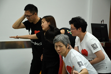 演出开始,演员们为了让大家了解今天活动的形式,为我们逐一演绎了他们的“五月”是什么样的。忙乱是常态,感冒发烧还夹杂在其中,充分体现了五月人倍忙的这一主题。每个人的故事正式开始后,第一个环节,大家坐在自己的座位上自主讲述自己最近的故事。开始大家还有些拘谨,不太敢于表达,甚至不知如何描述自己的状态,在主持人的一步步引导下,大家逐渐明白该如何去表达。演员们根据故事情节迅速做出反馈,并以表演的形式呈现出来。